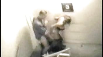 Mature lesbians without stockings squeeze pussy in the bathroom